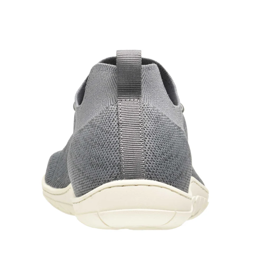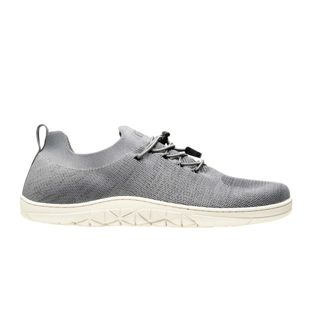 Ovandel: Ljus-mellangrå, stickad ovandel gjord av återvunnen kaffesump. Gjord som en strumpa, dvs ingen lös plös. Följsam och mjuk med god andningsförmåga. Snabbtorkande. Naturligt antibakteriell. Elastisk snabbsnörning i samma grå färg som skon. Asymmetrisk framfot för bra tåspridning.