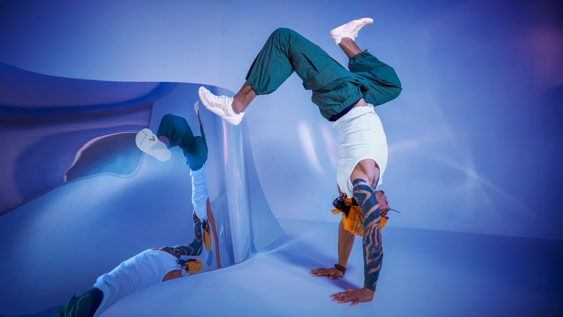 Ovandel: Ovandelen är gjord i ett stycke som en strumpa, i ventilerande och elastisk mesh av återvunna pet-flaskor med 3% elastan. Hög andningsbarhet. Elastisk snabbsnörning. Svart och mörkt grå med logga i vitt mot fotens utsida. Svarta skosnören med små bita blippar.